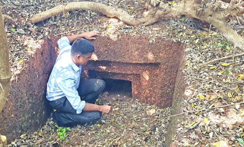 text_fieldsകരിന്തളം പാത്തടുക്കത്ത് കണ്ടെത്തിയ ഒറ്റത്തൂൺ ചെങ്കല്ലറ