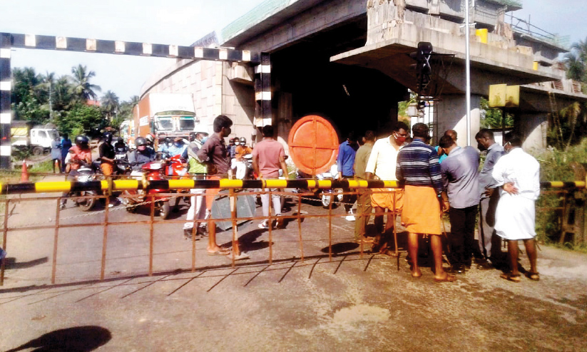 ചൊവ്വാഴ്ച പുലര്ച്ചെ 6.40ഓടെ മംഗളൂരു-തിരുവനന്തപുരം പരശുറാം എക്സ്പ്രസ് കടന്നുപോകാനായി ഗേറ്റ് അടക്കുന്നതിനിടെയാണ് റെയിൽവേയുടെ പടിഞ്ഞാറ് ഭാഗത്തുള്ള ഗേറ്റിെൻറ ബോള്ട്ട് പൊട്ടി താഴേക്ക് പതിച്ചത്. 10.30ന് ശേഷമാണ് തകർന്ന ഗേറ്റ് നന്നാക്കി ഗതാഗതം പുനഃസ്ഥാപിക്കാനായത്.