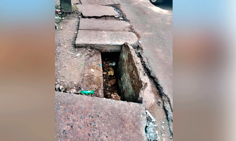 സ്ലാബില്ല, കാൽനട യാത്രക്കാർ ഓവുചാലിൽ