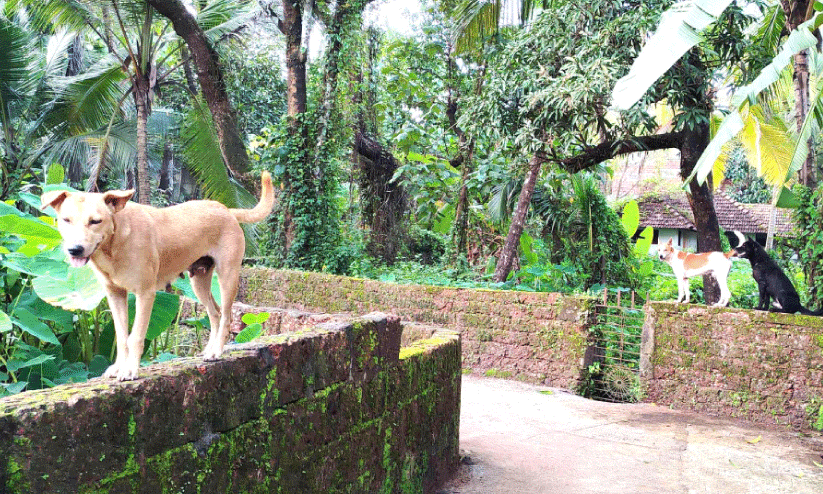 text_fieldsനീലേശ്വരം നഗരത്തിൽ റോഡരികിലുള്ള മതിലിന് മുകളിൽ തമ്പടിച്ച നായ്ക്കൾ