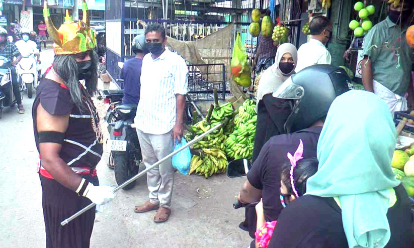 text_fieldsപടന്ന: പടന്നയിൽ 'കാലൻ' തന്നെ രംഗത്തിറങ്ങി പൊതുജനങ്ങളോട് പറഞ്ഞു, കോവിഡ് നിർദേശങ്ങൾ പാലിക്കാതെയും മുൻകരുതലുകൾ എടുക്കാതെയും അനാവശ്യമായി പുറത്ത് ചുറ്റിയടിക്കാനിറങ്ങിയാൽ പിന്തുടർന്ന് കൂടെ കൊണ്ടുപോകാൻ ഞാനുണ്ടെന്ന്. കോവിഡിെൻറ രണ്ടാം തരംഗത്തിൽ പാലിക്കേണ്ടുന്ന കർശന നിർദേശങ്ങളും മുൻകരുതലുകളുമായി പടന്ന ഗ്രാമ പഞ്ചായത്ത് മാഷ് ടീം അംഗങ്ങളാണ് ബോധവത്കരണ സന്ദേശവുമായി നഗരത്തിലിറങ്ങിയത്.