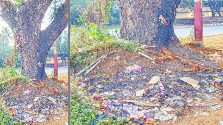 text_fieldsപാലക്കുന്നിൽ സാമൂഹിക വിരുദ്ധർ മാലിന്യം വലിച്ചെറിയുന്നതും കത്തിക്കുന്നതും ശീലമാക്കിയതിനെതുടർന്ന് ഒരുഭാഗം കത്തിയെരിഞ്ഞ വൻമരം