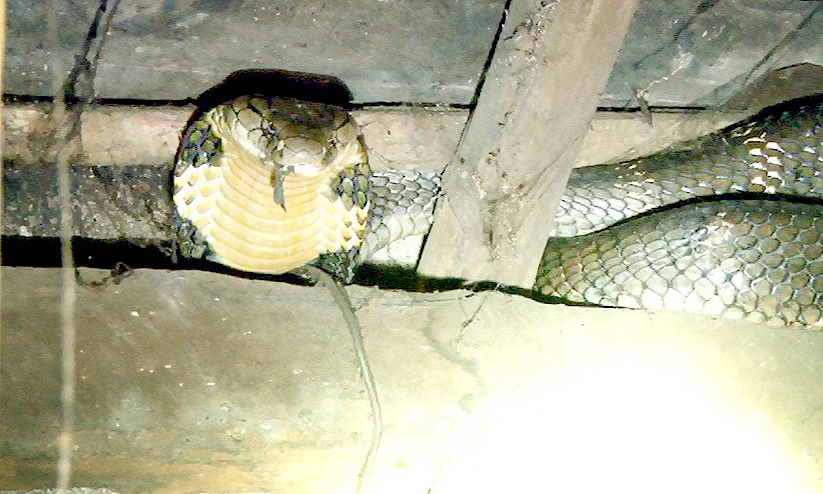 അടുക്കളയിൽ കയറിയ രാജവെമ്പാലയെ പിടികൂടി