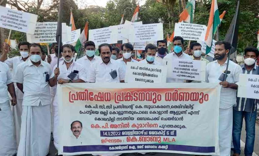 കെ.പി. അനില് കുമാറിനെതിരേ കോണ്ഗ്രസ് പ്രതിഷേധം