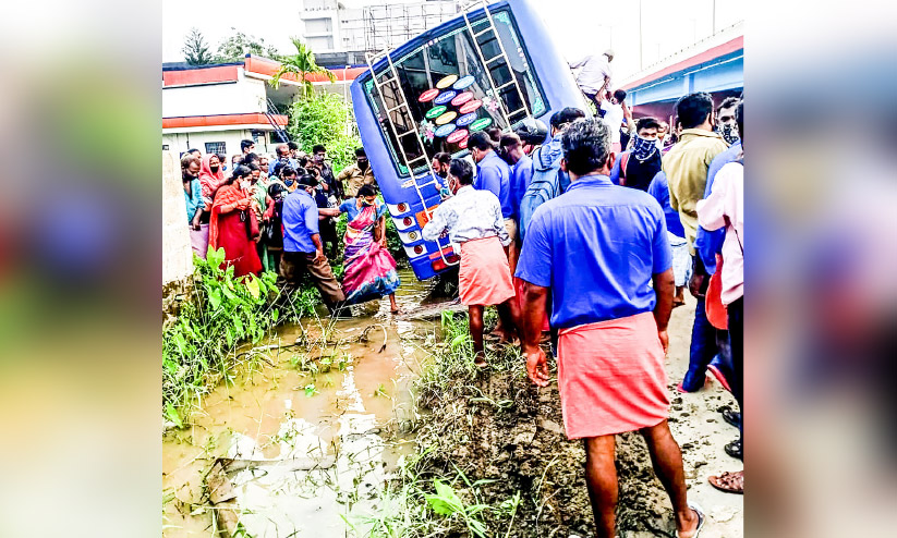 ബസിെൻറ ഒരു വശത്തെ ചക്രങ്ങൾ റോഡരികിലെ കാനയിൽ താഴ്ന്ന് നിന്നെങ്കിലും മറിയാതിരുന്നതിനാൽ യാത്രക്കാർ പരിക്കേൽക്കാതെ രക്ഷപ്പെട്ടു. യാത്രക്കാരെ ഇറക്കിയ ശേഷം ബസ് പൊലീസ് സ്റ്റേഷനിലേക്ക് കൊണ്ടുപോയി.