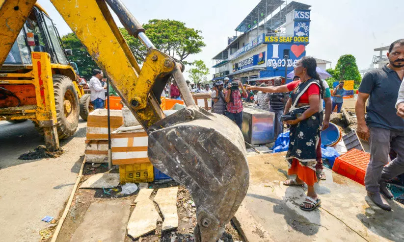 കാളമുക്ക് സര്ക്കാര് ഹാര്ബറിലേക്ക് വഴിയൊരുക്കൽ; ഗോശ്രീ കവലയിലെ അനധികൃത മത്സ്യവിൽപന സ്റ്റാളുകള് ഒഴിപ്പിച്ചു