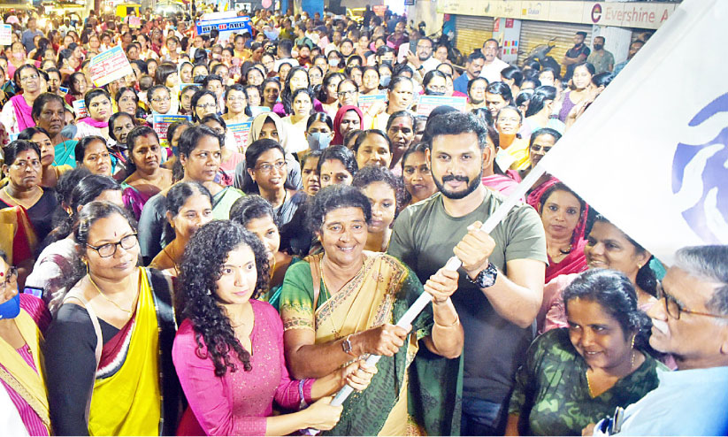 text_fieldsവൈപ്പിൻ വനിതകളുടെ രാത്രികാല നടത്തം സിനിമ താരങ്ങളായ അന്ന ബെൻ, പൗളി വത്സൻ, കൈലാഷ് എന്നിവർ ചേർന്ന്