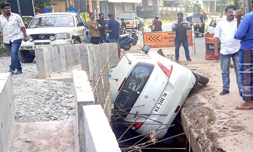 പെരുങ്ങള്ളൂരിൽ വീണ്ടും വാഹനാപകടം; കാർ കുഴിയിലേക്ക് മറിഞ്ഞു