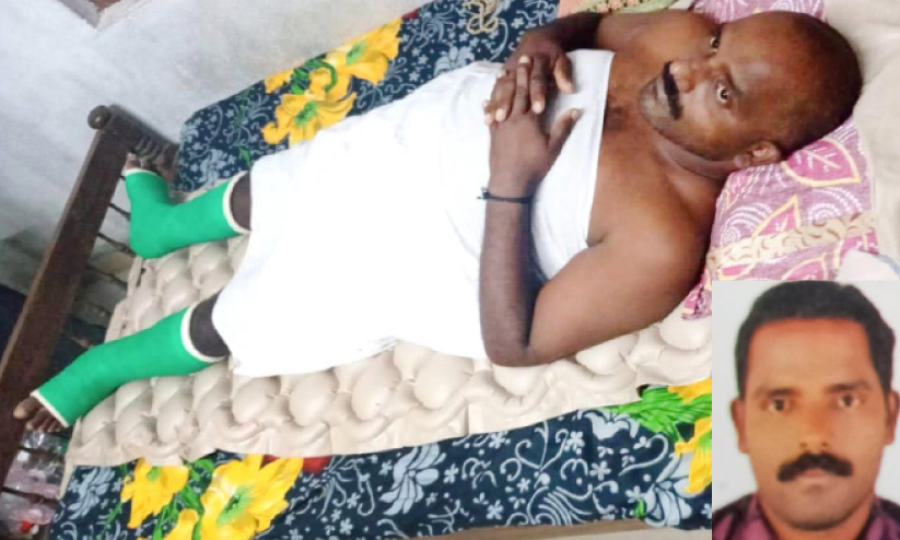 text_fieldsകെട്ടിട നിർമാണത്തിനിടെ ചാരം തകർന്ന് വീണ് പരിക്കേറ്റ സലീം (ഇൻസെറ്റിൽ പരിക്കേൽക്കുന്നതിന് മുമ്പുള്ള ചിത്രം)