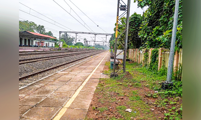 text_fieldsപ്ലാറ്റ്ഫോമിന് മേൽക്കൂര ഇല്ലാത്ത പെരിനാട് റെയിൽവേ സ്റ്റേഷൻ