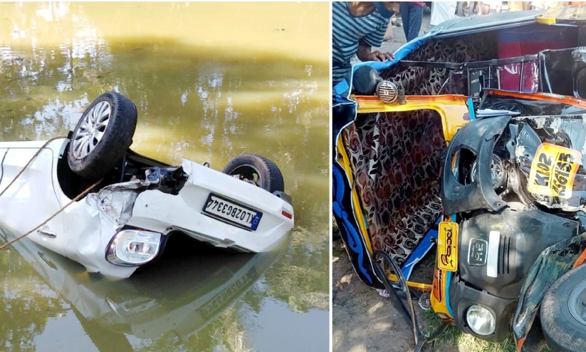 വാഹനങ്ങള് കൂട്ടിയിടിച്ചു; നിയന്ത്രണം വിട്ട കാര് കുളത്തില് വീണു, അഞ്ചുപേർക്ക് പരിക്ക്