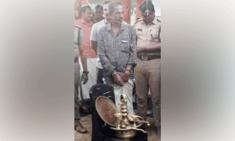 text_fieldsമോഷ്ടിച്ച തൂക്കുവിളക്കും പിടിയിലായ പ്രതി അനിൽകുമാറും