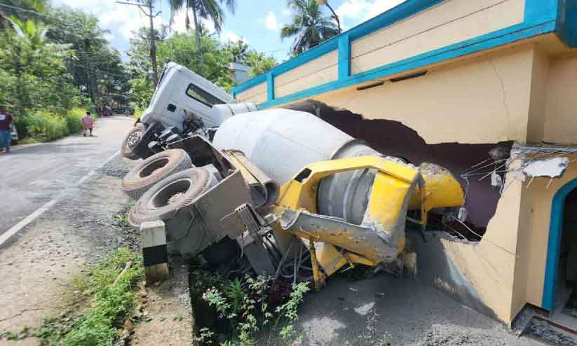 കോണ്ക്രീറ്റ് മിക്സിങ് വാഹനം മറിഞ്ഞ് വീട് തകര്ന്നു