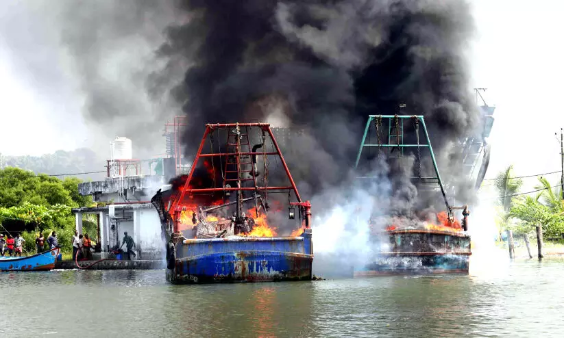 മത്സ്യബന്ധന ബോട്ടുകൾ തീപിടിച്ച് നശിച്ചു