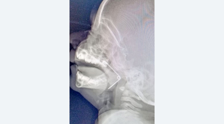 text_fieldsകുഞ്ഞിെൻറ തൊണ്ടയിൽ സേഫ്റ്റിപിൻ കുടുങ്ങിയതിെൻറ എക്സ്റേ ദൃശ്യം