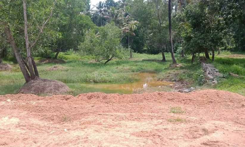 text_fieldsവെള്ളം കെട്ടിക്കിടക്കാറുള്ള തണ്ണീർതടങ്ങൾ മണ്ണിട്ട് നികത്തിയ നിലയിൽ