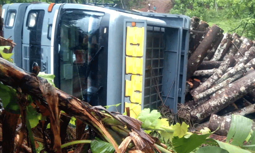 തർക്കത്തെ തുടർന്ന് തടഞ്ഞ ലോറി നിയന്ത്രണം വിട്ട് താഴ്ചയിലേക്ക് മറിഞ്ഞു; ഡ്രൈവര്ക്ക് പരിക്ക്