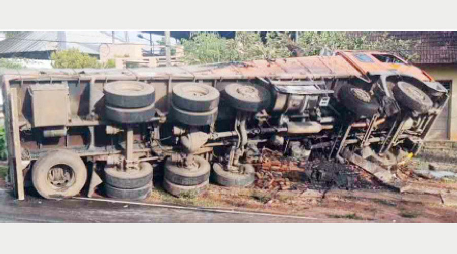 ലോറി നിയന്ത്രണംവിട്ട് മറിഞ്ഞു; ഡീസൽ ടാങ്ക് പൊട്ടി തീപടർന്നു