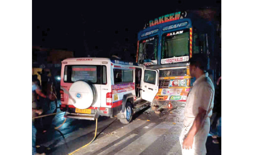 കന്നേറ്റി പാലത്തിൽ ലോറിയും ആംബുലൻസും കൂട്ടിയിടിച്ച് രണ്ട് പേർക്ക് പരിക്ക്
