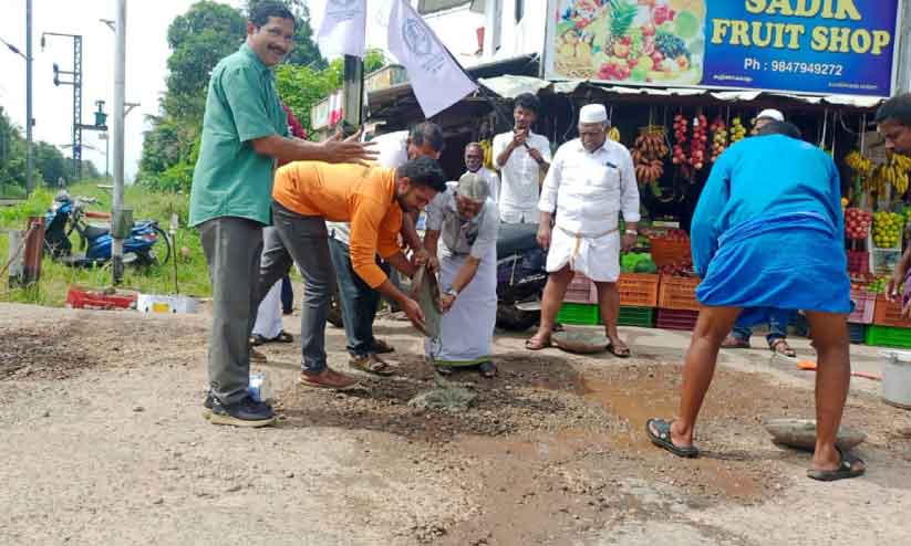 കുഴികളടച്ച് വ്യാപാരികൾ