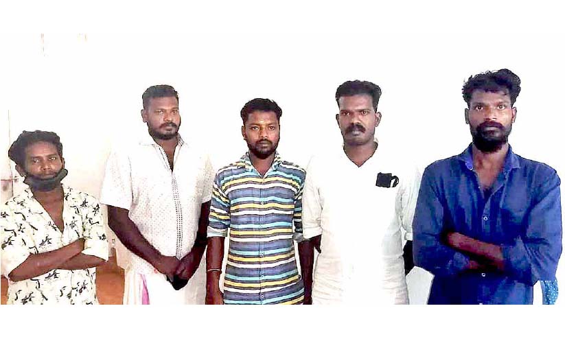 ചെപ്ര പുത്തലത്ത് മുകളുവിള താഴതിൽ പുത്തൻവീട്ടിൽ ബി. സജിത് (27), വാപ്പാല സുബിൻ നിവാസിൽ ബി.എസ്. അനീഷ് കുമാർ (31) സഹോദരൻ ബി.എസ്. സുബിൻ (25), ചെപ്ര പുള്ളാടി സുധീഷ് ഭവനിൽ സുരേഷ് കുമാർ (34), ചെപ്ര നടയത്ത് മേലതിൽ കെ. സജുമോൻ (34) എന്നിവരെയാണ് അറസ്റ്റ് ചെയ്തത്.