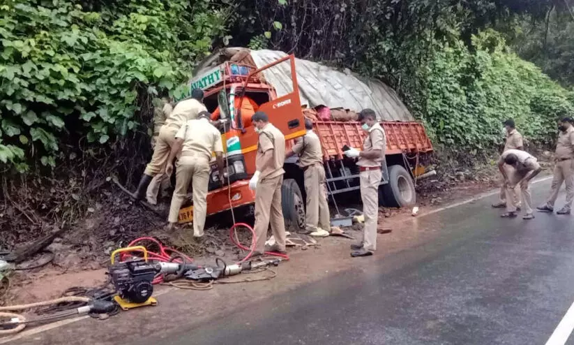 ഇറക്കവും കൊടുംവളവുമായ ഈ ഭാഗത്ത് പാതയിലെ വഴുവഴുപ്പ് കാരണം ലോറി നിയന്ത്രണം വിട്ട് വശത്തേക്ക് ഇടിച്ചുകയറുകയായിരുന്നു.