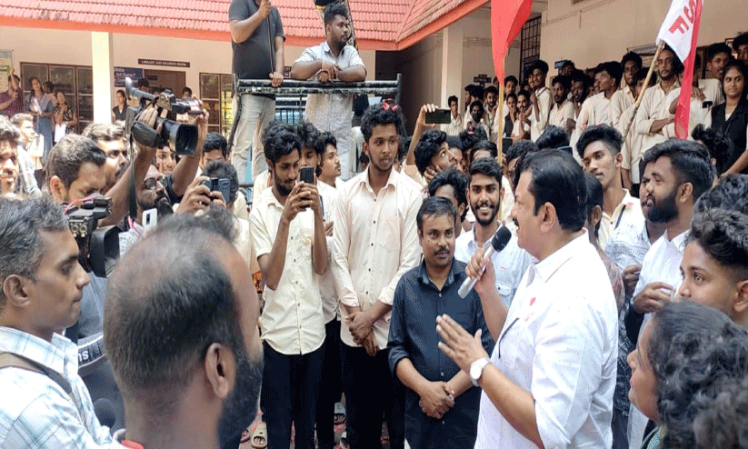 ഗവ. പോളിടെക്നിക്കിൽ വിദ്യാർഥികളോട് വോട്ട് അഭ്യർഥിക്കുന്നു