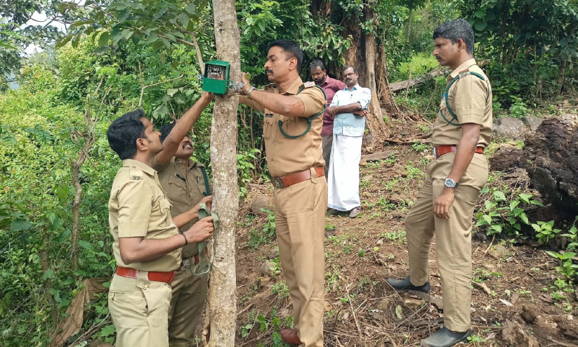 ആര്യങ്കാവ് കുളിർകാട് പുലിയെ കണ്ടെത്താൻ കാമറ സ്ഥാപിക്കുന്നു