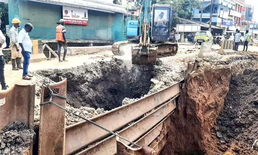 മറുവശത്ത് കലുങ്കിനായി വലിയ കുഴിയെടുത്ത് നിർമാണപ്രവർത്തനം നടക്കുന്നുണ്ട്. കുഴിയോട് ചേർന്ന് ഗർഡറുകൾ സ്ഥാപിച്ചാണ് മണ്ണ് നിറച്ച് താൽക്കാലിക പാത ഒരുക്കിയിരുന്നത്. ഗർഡറിന്റെ അടിഭാഗത്തെ മണ്ണ് പൂർണമായി ഇടിഞ്ഞ് തോട്ടിലേക്ക് പതിക്കുകയായിരുന്നു. അപകടസമയത്ത് തൊട്ടടുത്തുതന്നെ നിർമാണപ്രവർത്തനങ്ങൾ നടക്കുന്നുണ്ടായിരുന്നു. റോഡ് പൂർവസ്ഥിതിയിലാക്കാൻ ഉടൻതന്നെ നടപടി തുടങ്ങിയെങ്കിലും പൂർത്തിയായിട്ടില്ല.