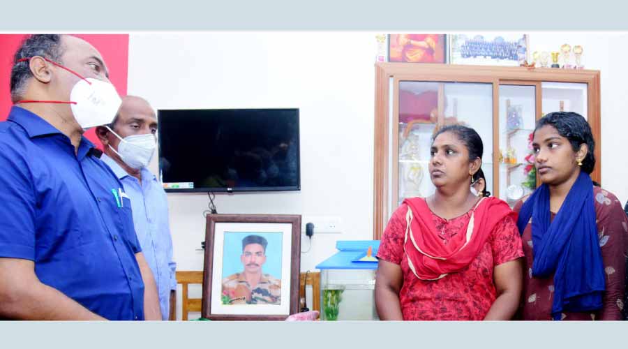 കൊല്ലം: ജമ്മു-കശ്മീരിലെ പൂഞ്ചില് വീരമൃത്യു വരിച്ച കുടവട്ടൂര് സ്വദേശി ജവാന് വൈശാഖിെൻറ സഹോദരിക്ക് ജോലി നൽകുന്നതിനുള്ള നടപടികൾ അതിവേഗം പൂർത്തിയാക്കുമെന്ന് മന്ത്രി കെ.എൻ. ബാലഗോപാല്. രാജ്യത്തിന് വേണ്ടി ജീവന് ബലിയര്പ്പിച്ച ജവാനെന്ന പ്രത്യേക പരിഗണനയോടെയാണ് തീരുമാനങ്ങളെന്നും വൈശാഖിെൻറ വീട്ടിലെത്തിയ മന്ത്രി വ്യക്തമാക്കി.
