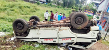 ബൈപാസിൽ ഒറ്റക്കൽ സിഗ്നൽ ജങ്ഷനുസമീപം പൊലീസ് കൺട്രോൾ റൂം വാഹനം തലകീഴായി മറിഞ്ഞനിലയിൽ