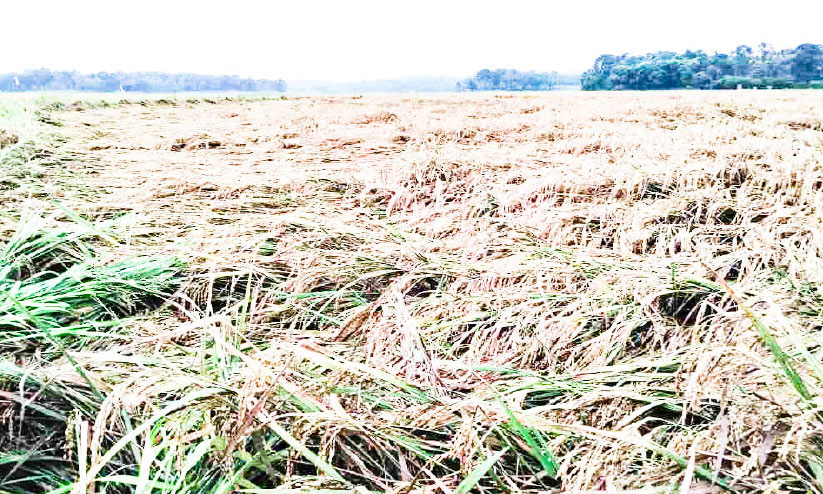 വേനൽ മഴയും കാറ്റും വിളവെടുക്കാറായ 50 ഏക്കറോളം നെല്ല് വീണുനശിച്ചു