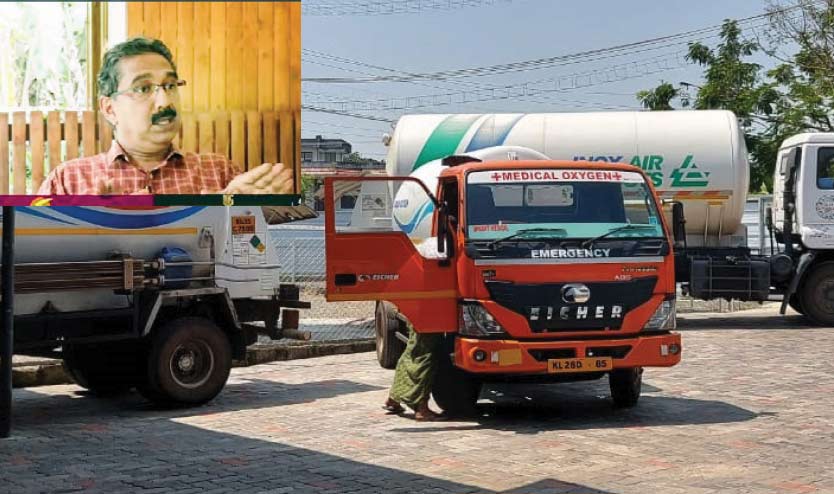 text_fieldsപത്തനംതിട്ടയിലെ കിൻഫ്ര പാർക്കിലെ സ്റ്റോറേജ് ടാങ്കിൽനിന്ന് വിതരണത്തിന് ഓക്സിജൻ കൊണ്ടുപോകുന്ന വാഹനങ്ങൾ. ഇൻസെറ്റിൽ അബ്ദുൽ റഹീം മേത്തർ