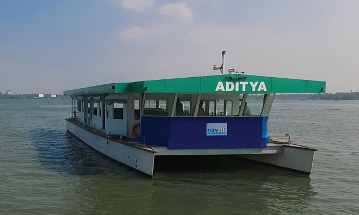 2017 ജനുവരി 12ന് വൈക്കം-തവണക്കടവ് റൂട്ടിലാണ് രാജ്യത്തെ ആദ്യത്തെ സൗരോർജ ബോട്ട് ‘ആദിത്യ’ ഓടിത്തുടങ്ങിയത്. ഏഴുവർഷമായി സർവിസ് നടത്തുന്ന ആദിത്യ ആദ്യ മൂന്നുവർഷം കൊണ്ട് നിർമാണച്ചെലവ് തിരിച്ചുപിടിച്ചു. സോളാറിലേക്ക് മാറിയപ്പോൾ ചെലവ് 250-300 രൂപയായി കുറഞ്ഞെന്നായിരുന്നു ജലഗതാഗത വകുപ്പിന്റെ കണക്ക്. നേരത്തേ 7000-10,000 രൂപ വരെ ഡീസൽ ഇനത്തിൽ ചെലവായിരുന്നു. അടുത്തിടെ, ജലഗതാഗത വകുപ്പിന്റെ സൗരോർജ ടൂറിസ്റ്റ് ബോട്ട് ‘ഇന്ദ്ര’ കൊച്ചി കായലിൽ സർവിസ് തുടങ്ങിയിരുന്നു.