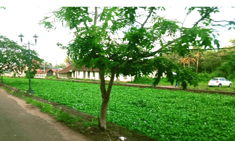 പോളയിൽ കുരുങ്ങി ബോട്ട് യാത്ര ദുരിതത്തിൽ