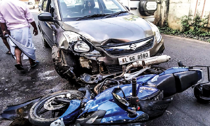 കാറും ബൈക്കും കൂട്ടിയിടിച്ച് യുവാവിന് പരിക്ക്