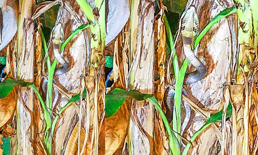 വാഴയില് കയറിയ മൂര്ഖന് 'പിടിയിൽ'