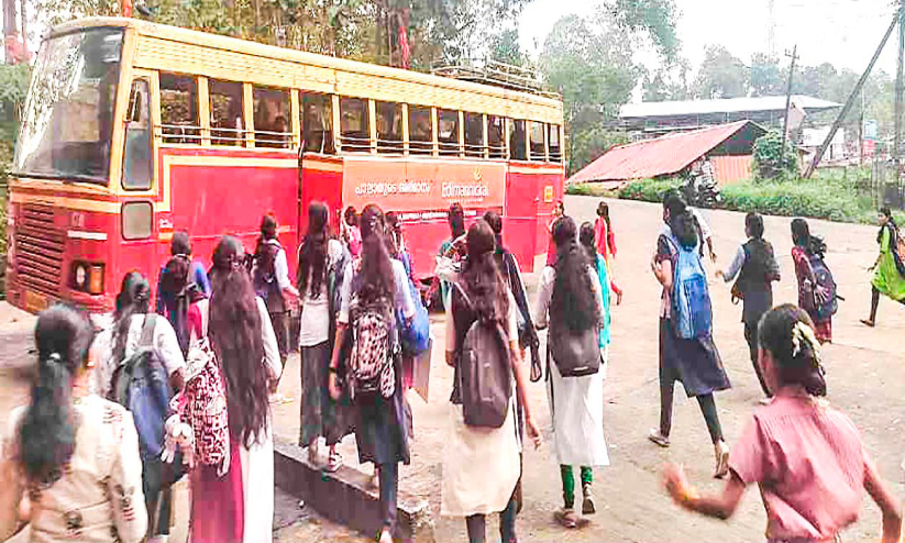 text_fieldsമണിക്കൂറുകൾ കാത്തുനിന്ന ശേഷം എത്തിയ ബസിൽ കയറുന്ന വിദ്യാർഥികൾ