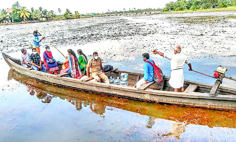എഴുമാംകായലിലൂടെ പോകുന്ന തെരഞ്ഞെടുപ്പ് ഉദ്യോഗസ്ഥര്