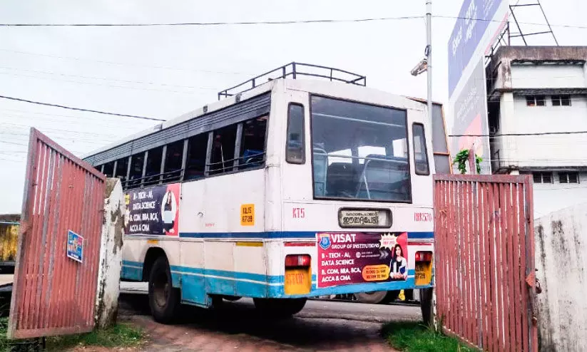കെ.എസ്.ആർ.ടി.സി ബസ് റോഡ് മുറിച്ചുകടന്ന് പിന്നിലേക്കുരുണ്ടു; ഒഴിവായത് വൻ അപകടം