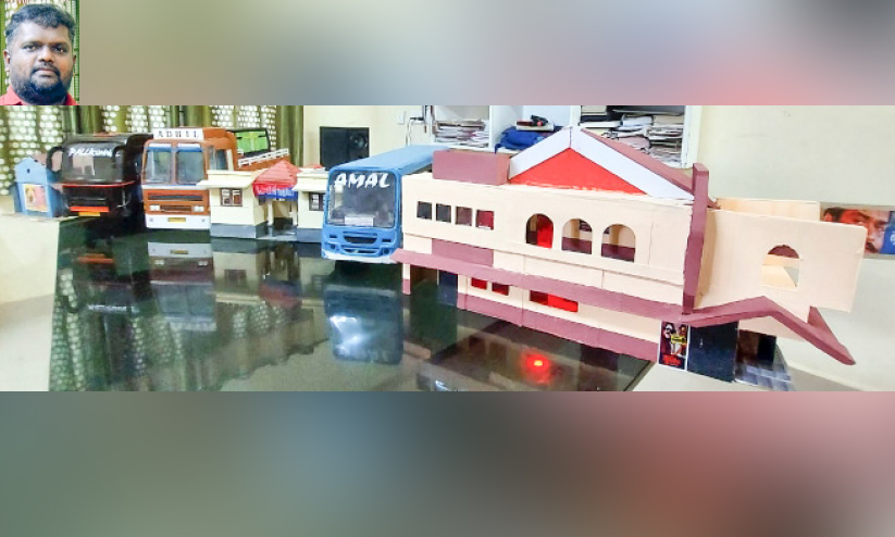 ബസുകളുടെ മാതൃക യഥാർഥമാണെന്ന പ്രതീതി സൃഷ്ടിക്കുന്നതാണ്. സീറ്റുകൾ, സ്റ്റിയറിങ്, ഡീസല് ടാങ്ക്, എന്ജിന് ഭാഗം എല്ലാം ഒറിജിനലിനെ വെല്ലുന്ന സൂപ്പര് ബസുകള്. നിർമാണത്തിന് ആകെ ചെലവഴിച്ചത് നാലുനാള് മാത്രം. 'ദൃശ്യം' സിനിമയിലെ പൊലീസ് സ്േറ്റഷെൻറ മാതൃകയും നിര്മിച്ചിട്ടുണ്ട്.