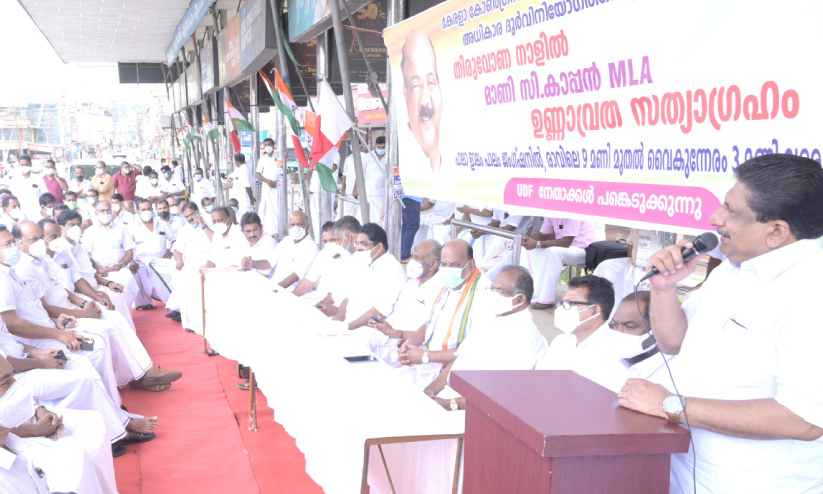 തിരുവോണദിനത്തിൽ പാലായിൽ പട്ടിണിയിരുന്ന് കാപ്പൻ