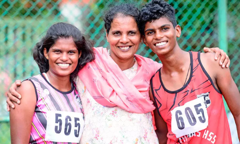 കഷ്ടപ്പാടുകളെല്ലാം മറന്ന് ഷീജ നിറഞ്ഞുചിരിച്ചു, അവരെ ചേർത്തുപിടിച്ച് മക്കളും. പോള്വാൾട്ട് പിറ്റ് കൈയടികളോടെ ആ സ്നേഹപ്രകടനം ഏറ്റെടുത്തു. പോൾ വാൾട്ടിൽ ജൂനിയര് വിഭാഗം ആൺകുട്ടികളുടെ വിഭാഗത്തിൽ റെക്കോഡോടെ സ്വർണം നേടിയ മിലൻ സാബുവും സീനിയർ വിഭാഗം പെൺകുട്ടികളിൽ സുവർണനേട്ടം എത്തിപ്പിടിച്ച മെല്ബ മേരി സാബുവുമാണ് ആ മക്കൾ.