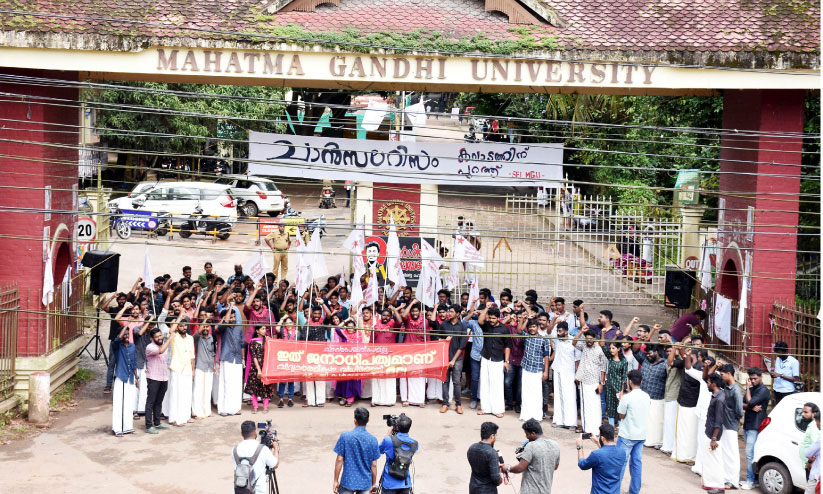 text_fieldsഗവർണർക്കെതിരെ മുദ്രാവാക്യമെഴുതിയ ബാനറുമായി എം.ജി സർവകലാശാലയിൽ എസ്.എഫ്.ഐ പ്രവർത്തകർ നടത്തിയ ആഹ്ലാദ പ്രകടനം