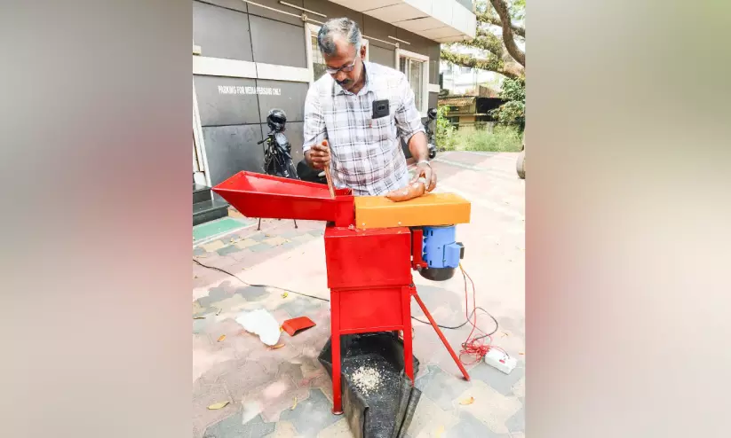 text_fieldsജോഷി ജോസഫ് താൻ നിർമിച്ച റെനോവ് ഷ്രഡിങ് ആൻഡ് ഗ്രൈൻഡിങ് മെഷിനുമായി