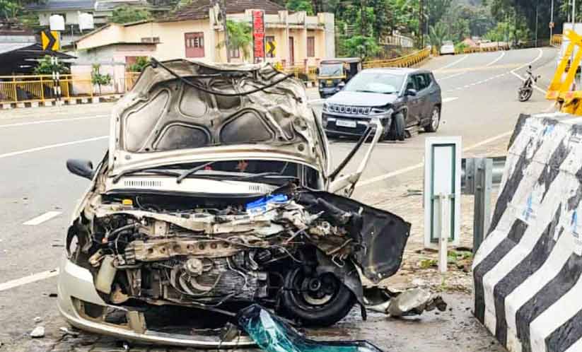 text_fieldsപുനലൂർ-മൂവാറ്റുപുഴ സംസ്ഥാന പാതയിൽ മണിമലക്ക് സമീപം കരിമ്പനക്കുളത്തുണ്ടായ അപകടത്തിൽ തകർന്ന കാർ