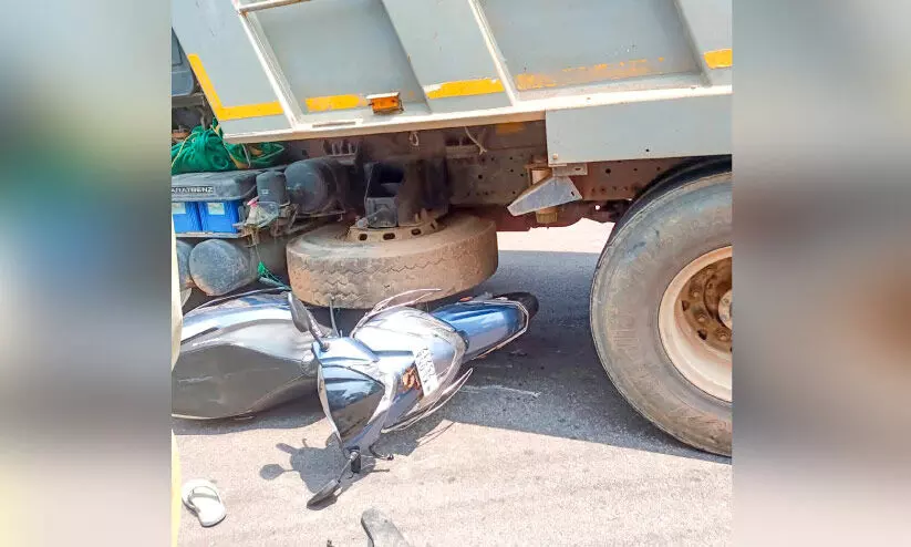 text_fieldsടോറസ് ലോറി സ്കൂട്ടറിൽ ഇടിച്ചപ്പോൾ