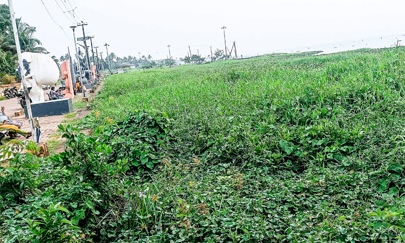 text_fieldsവൈക്കം കായലോര ബീച്ചിലെ സ്മാരകശില രൂപങ്ങൾക്ക് സമീപം പോളയിൽ വളർന്ന നിൽക്കുന്ന കായൽ പുല്ലുകൾ