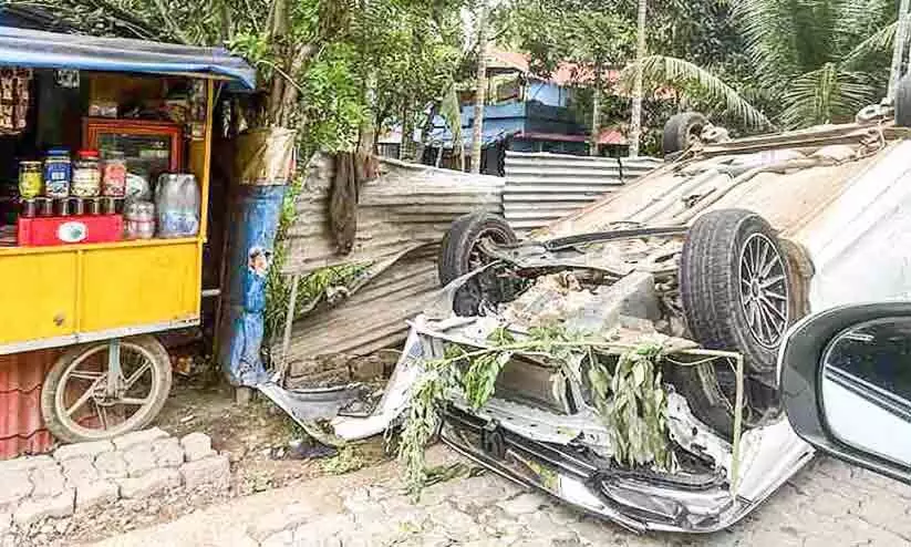 text_fieldsവൈക്കം: വൈക്കം-വെച്ചൂർ റോഡിലെ വേരുവള്ളി ജങ്ഷനിൽ അപകടങ്ങൾ പതിവാകുന്നു. ശനിയാഴ്ച അമിത വേഗത്തിലെത്തിയ കാർ കീഴ്മേൽ മറിഞ്ഞതാണ് ഒടുവിലത്തെ അപകടം. നിയന്ത്രണംവിട്ട കാർ റോഡരികിലെ ബി.എസ്.എൻ.എൽ സ്ഥാപിച്ച ബോക്സിൽ ഇടിച്ചശേഷം ഉയർന്നു പൊങ്ങി കീഴ്മേൽ മറിയുകയായിരുന്നു.കാറിൽ സഞ്ചരിച്ച പാലാ സ്വദേശി നിസ്സാര പരിക്കുകളോടെ രക്ഷപ്പെട്ടു.