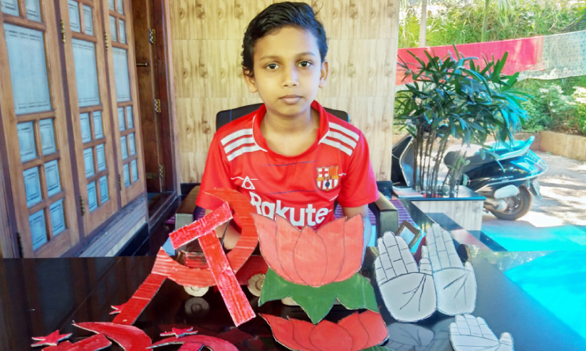 വീട്ടിൽ വോട്ട് ചോദിച്ചെത്തുന്ന സ്ഥാനാർഥികൾക്ക് വോട്ട് നൽകുന്നില്ലെങ്കിലും അവരുടെ മനോഹരമായ തെരഞ്ഞെടുപ്പ് ചിഹ്നം തയാറാക്കി സ്വീകരിക്കും നേഷനൽ സ്കൂളിനടുത്തെ ആര്യ നിവാസിലെ അലയ്. കൊറോണക്കാലത്തെ വോട്ടുപിടിത്തത്തിന് അൽപം അകൽച്ചയുളളതിനാൽ ഈ മിടുക്കെൻറ പ്രവൃത്തി സ്ഥാനാർഥികൾക്ക് ഏറെ സന്തോഷം നൽകുന്നു.
